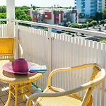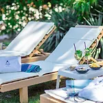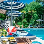 A Lignano Sabbiadoro városi Medusa Splendid hozzáférést biztosít egy népszerű strandhoz klubfotelekkel és napernyőkkel.
